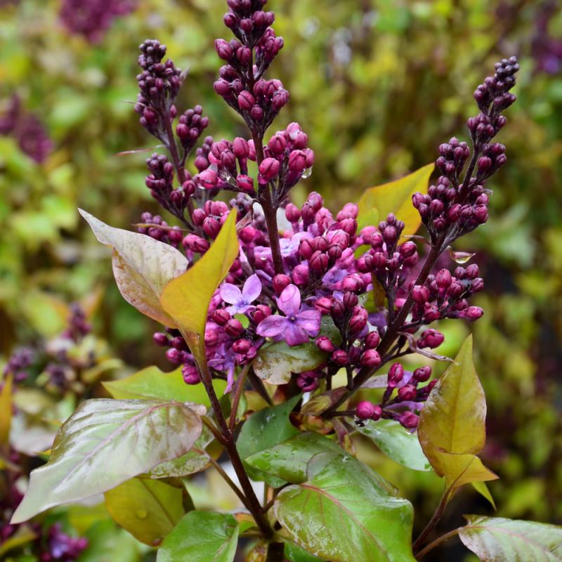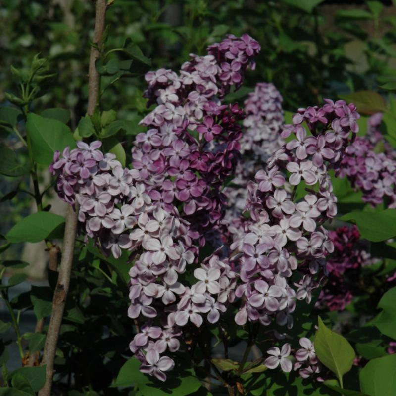 An early-spring blooming lilac from the US National Arboretum with large panicles of intensely fragrant reddish-purple flowers; upright, multi-stemmed habit, limited suckering, ideal for screening; full sun and well-drained soil; resistant to mildew