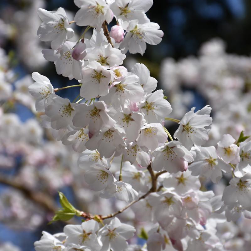 A hybrid of the Japanese flowering cherry that's smothered in clusters of showy light pink flowers in early spring and a rounded habit of growth; memorable to a fault when in bloom so give a place of prominence, needs full sun and well-drained soil
