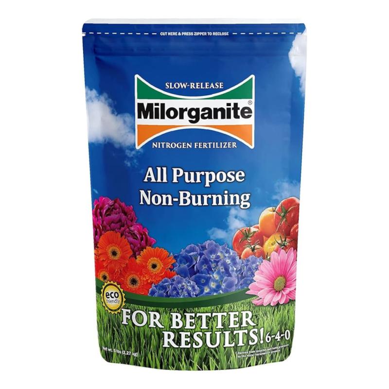 Milorganite 5 lb. Fertilizer. It is used by golf course superintendents and professional turf managers for over 90 years. This virtually goof-proof fertilizer poses no risk to the environment and contains iron for deep greening. Easy to use, it works everywhere, including lawns, flower beds, vegetable gardens, trees, and shrubs.