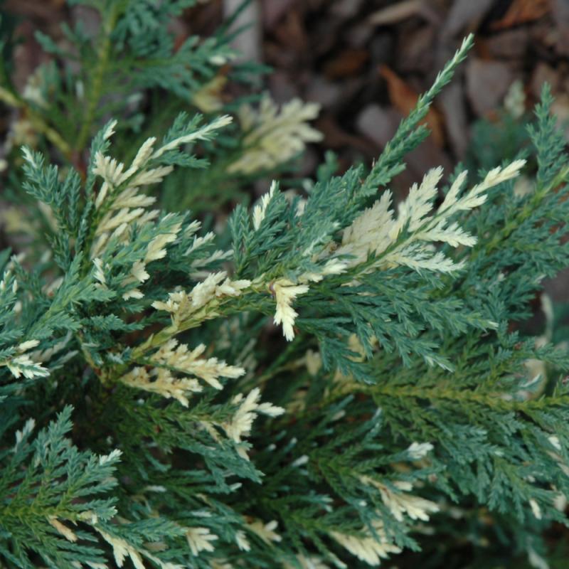 Lovely graceful form with pendulous branches of dazzling gray-green and white variegated foliage; an extremely narrow and weeping evergreen with some shade tolerance; this tree has beauty and grace and can be treated as a cherished specimen