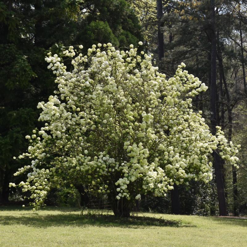 A sterile seedless variety; gigantic white flower clusters start out lime green, illuminating border areas; rich red-purple fall color; can grow large and leggy, cutting back older branches one third to sustain lower blooming recommended