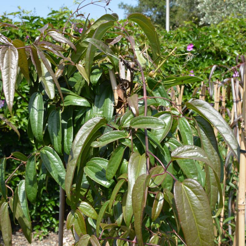 A large, vigorous, evergreen climber that gets covered profusely with single white star-shaped flowers with an almond scent, over leathery, dark green glossy leaves; perfect for covering a wall, trellis, or fence; prune soon after flowering