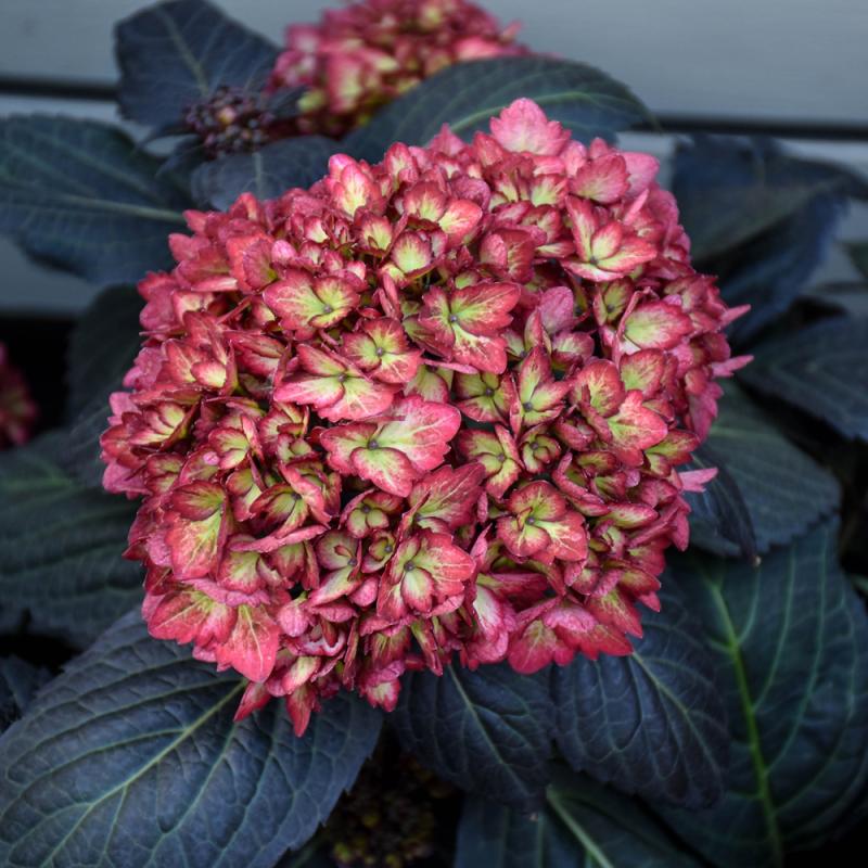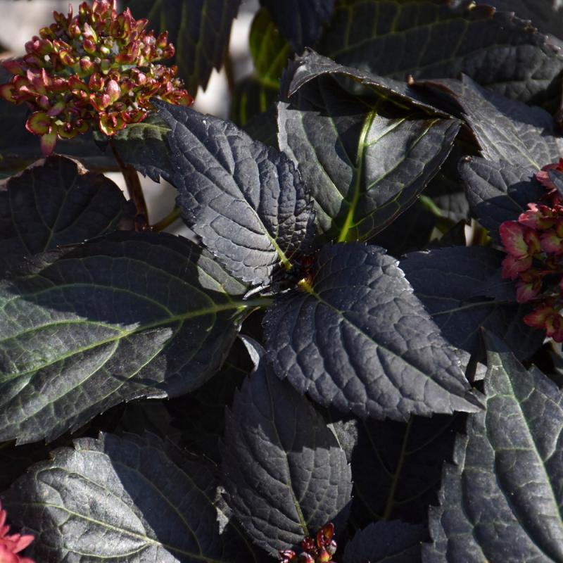 The first true dark-leaf mophead hydrangea; striking amethyst or cranberry colored blooms emerge over intense, dark purple leaves that hold their color, providing season-long beauty; it really stands out in the garden or in decorative containers