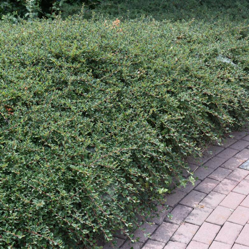 One of the best low spreading groundcovers, featuring white flowers in spring and showy coral pink fruit in fall; evergreen leaves require adequate snow cover or protection from winter sun and wind in exposed locations