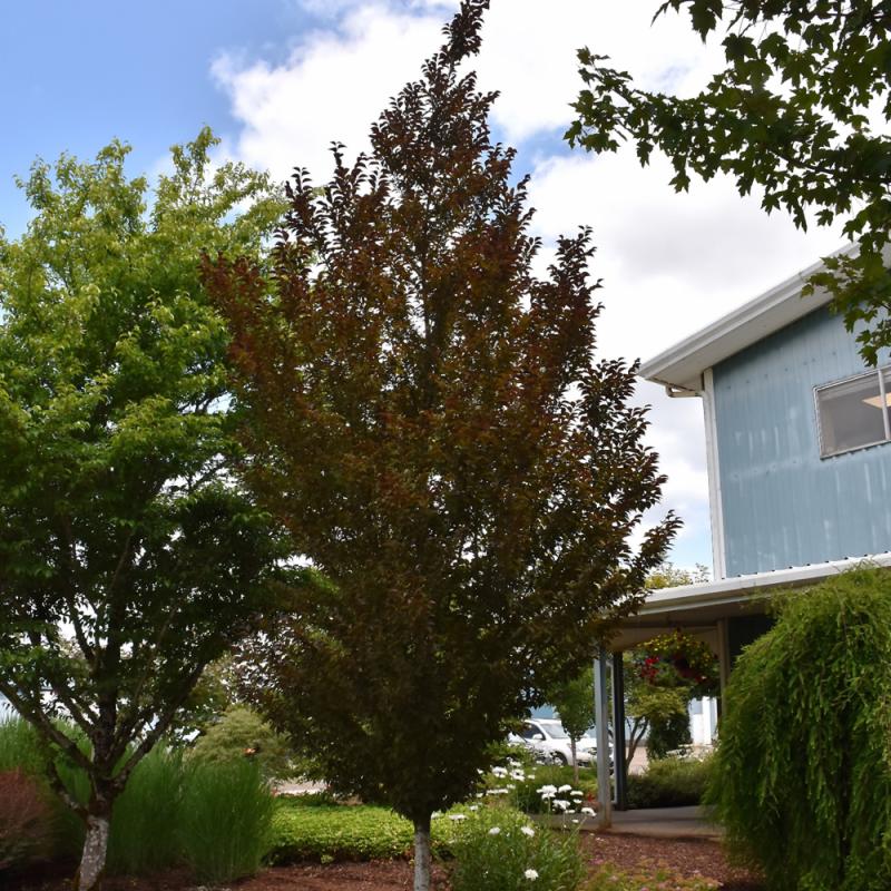 An impressive large shrub or small tree, featuring the most delicate white bell-shaped flowers hanging from graceful branches in early spring, contrasting maroon foliage; very attractive; needs moist, organic soil; better flowering and leaf color in sun
