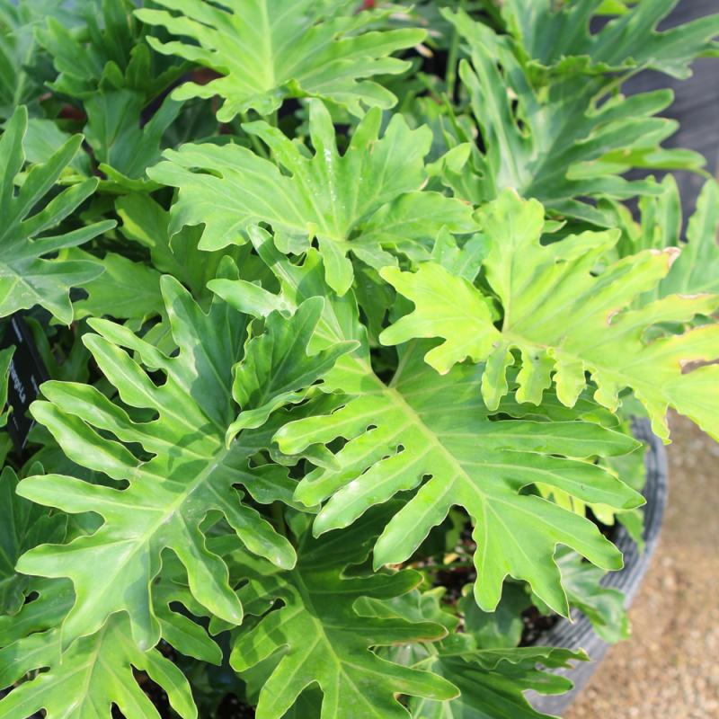 A dense, compact selection with deeply lobed green leaves that are glossy; foliage arches outward from a low trunk; a fuss-free plant, great for indoor containers as a tropical accent