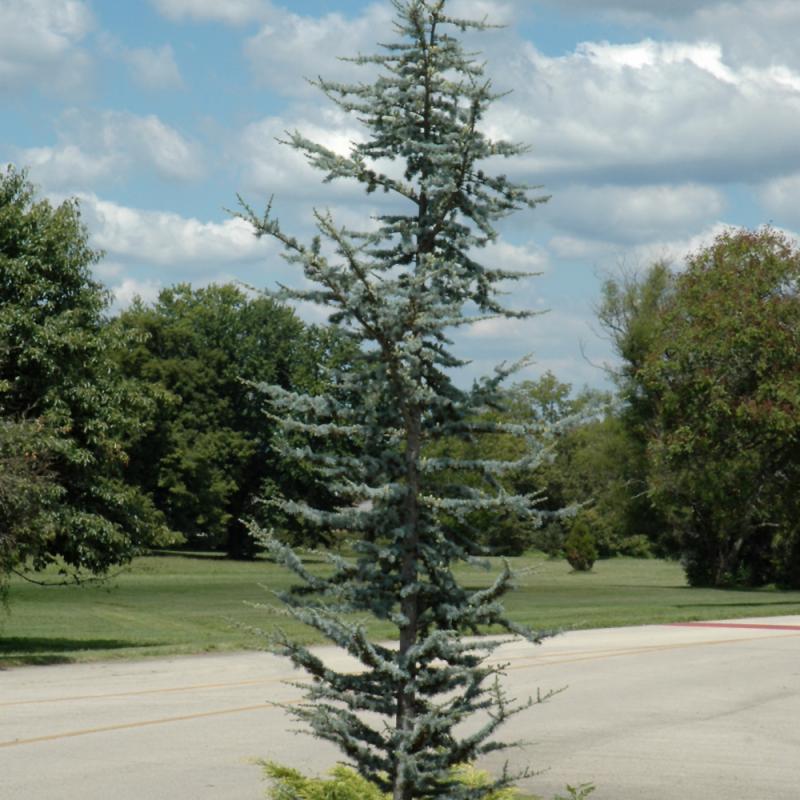 One of the most valuable landscape trees in the South, with a wide, spreading habit and silvery-blue needles, incredibly stately when mature; leave a very large open space for this tree to reach its peak value in maturity
