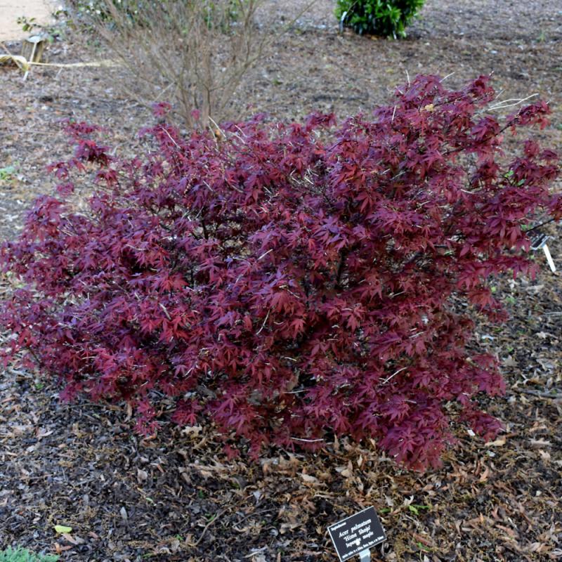 This variety produces small, deeply divided leaves that emerge bright cherry-red in spring, maturing to dark maroon for most of the summer; bright red fall color; an excellent choice for container or garden use