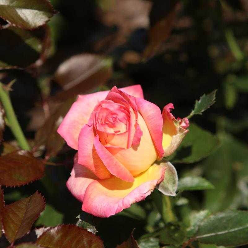 This spectacular rose features large, full golden-yellow blooms with outstanding hot pink edging; a compact, disease resistant plant that grows sturdy and upright, with stems that are excellent for cutting; also has a noteworthy sweet fragrance
