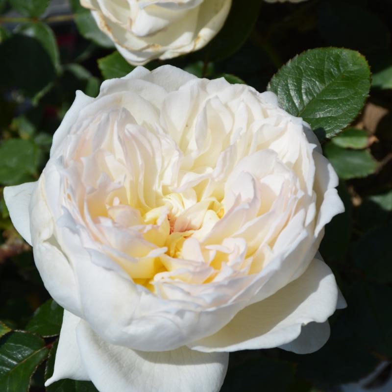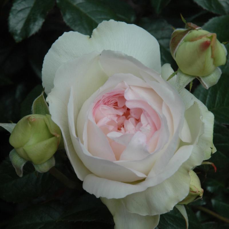 Bushy and upright in form, this floribunda rose produces lush and full, highly fragrant, creamy white blooms with pale pink centers; a tremendous visual impact when massed in the garden; an extraordinary cut flower; beautiful disease resistant foliage