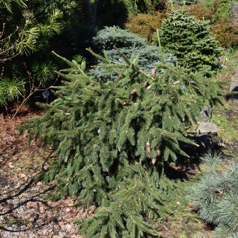 Like a smaller version of the species, this fine selection forms a medium-sized Christmas tree-like shrub, with pronounced upright cones; adaptable and hardy, slow growing; excellent choice for a small-scale vertical accent in the garden skyline