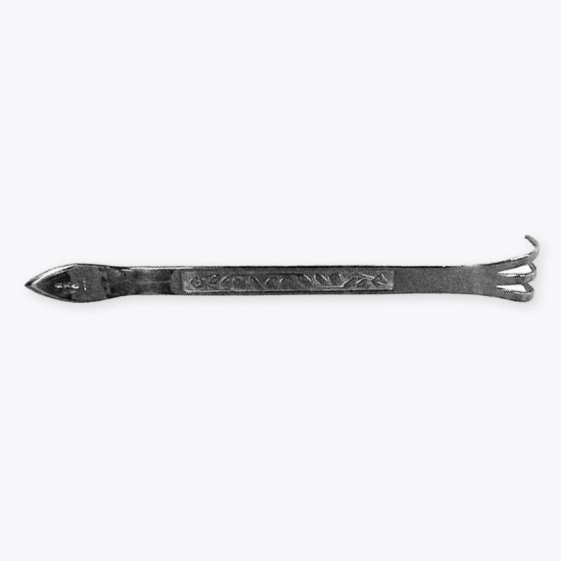 A bonsai rake with a spatula blade on one end for removing dirt and moss. The rake can be used to clean surface of the soil or break soil in a bonsai pot.