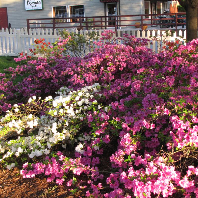 A delicate cultivar with eye catching lavender blooms with a red blotch that cover the branches in mid spring; showy when massed in a border; absolutely must have well-drained, highly acidic and organic soil, use plenty of peat moss when planting