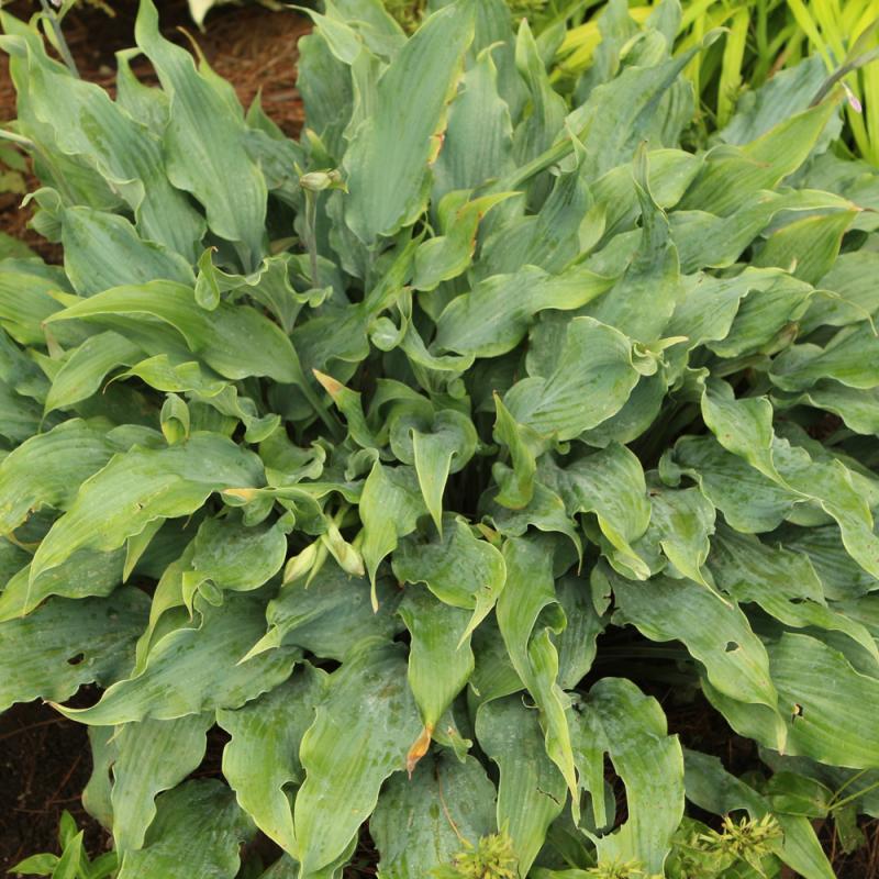 This unique variety has long, narrow, heavily rippled leaves that emerge silver-blue, maturing to blue-green; lavender striped flowers appear in mid-summer; unusual texture and great color for beds, borders or containers; quite hardy and low maintenance