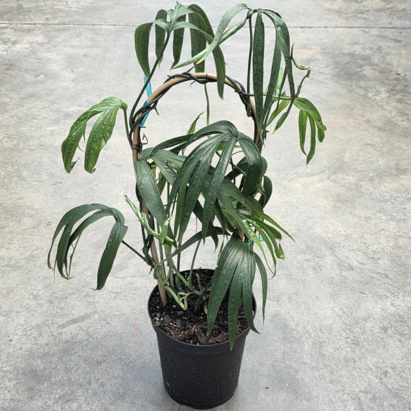 Amydrium ‘Zippelianum’ is an exotic and highly sought-after climbing aroid known for its strikingly perforated, lobed leaves that develop dramatic fenestrations as the plant matures. With its lush, tropical vibe and uniquely sculptural foliage, this plant is perfect for adding vertical interest when trained up a moss pole or trellis. It thrives in bright, indirect light with high humidity and well-drained soil kept lightly moist. ‘Zippelianum’ is ideal for a collector looking to expand their indoor jungle with something truly eye-catching and rare.