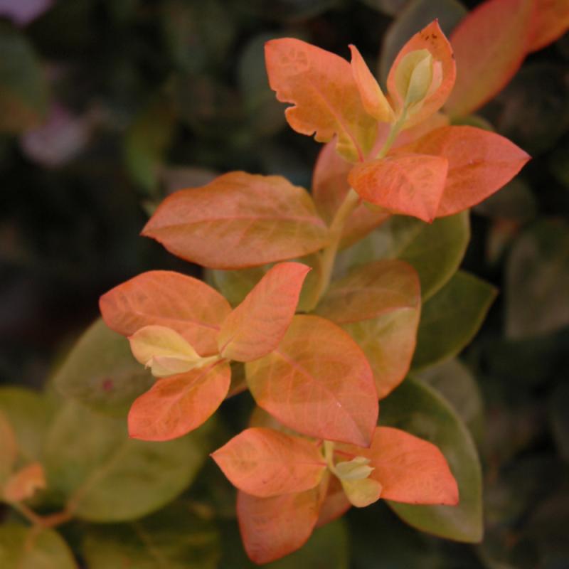 This exciting, compact dwarf variety is evergreen in most climates with glossy leaves that range from pink to orange to emerald green, turning deep purple in winter; abundant crop of sweet blueberries in mid summer; great for garden or patio