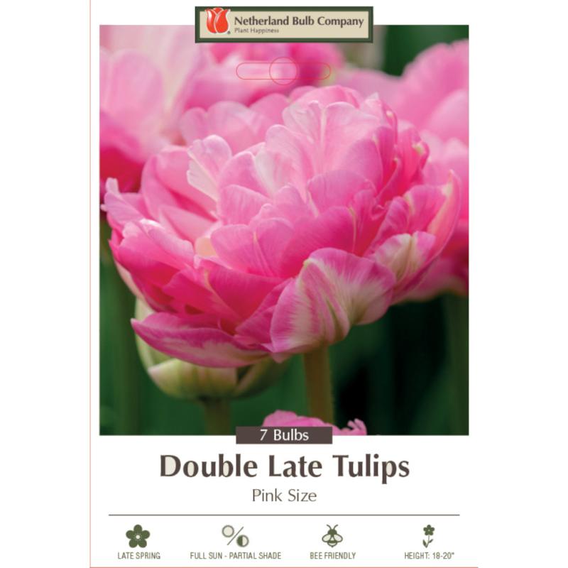 A large, fully double tulip with peony-like blooms in soft rose-pink, fading to pale pink and white with a yellow center. Ideal for cutting gardens and bold borders.