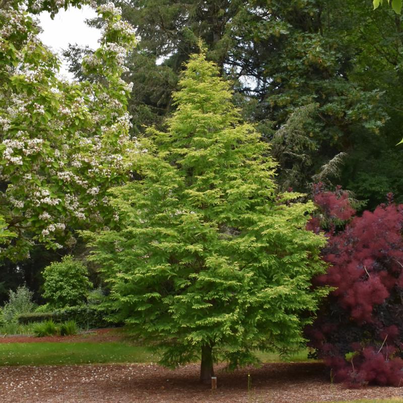 A stately deciduous conifer with gracefully arching branches of fine feathery foliage that emerges chartreuse in spring, and matures to a rich, bright green; rusty orange fall color; prefers plenty of moisture; perfect for urban and landscape use