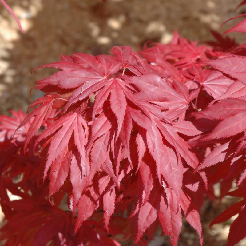 A compact and round dwarf variety with graceful soft red foliage in spring that darkens to burgundy in summer; fall color brightens to sunset hues of crimson and orange; excellent as a small garden accent