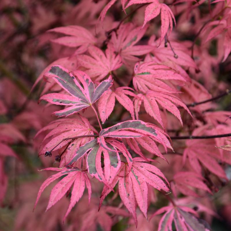 A spectacular variety featuring green and burgundy leaves variegated in shades of pink with cream highlights; purple-orange fall color; vivid, rich color and texture all season long; an ideal focal point for shrub gardens and small landscapes