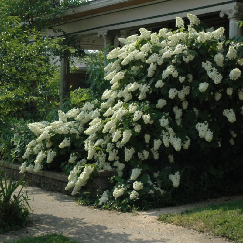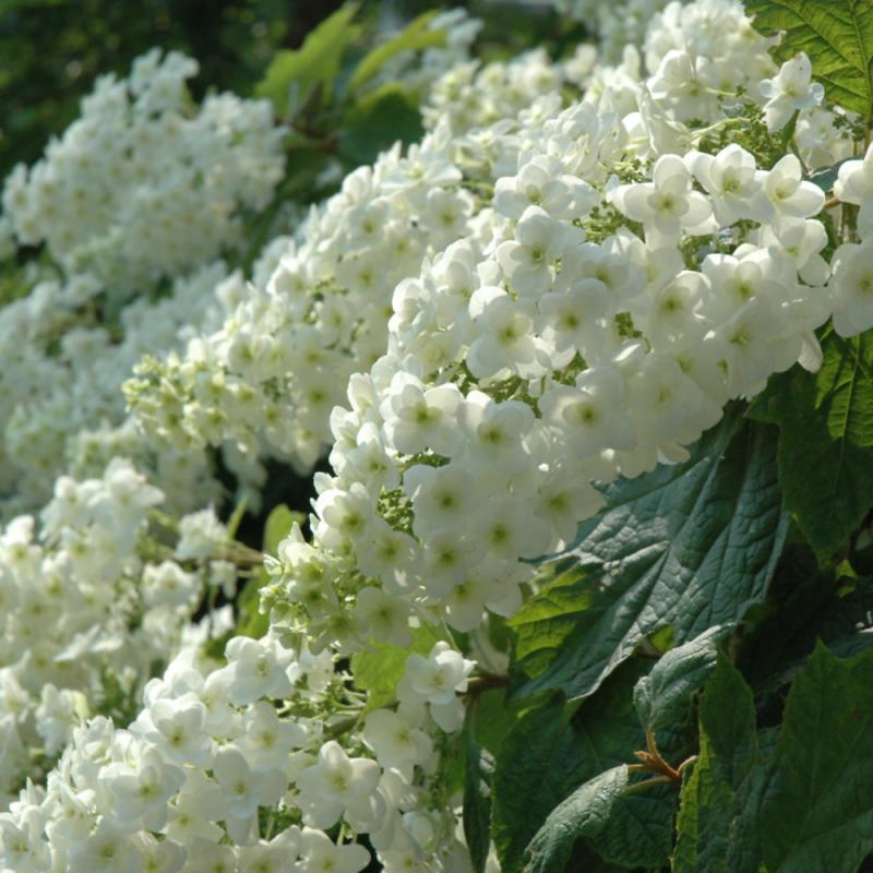A vastly improved compact form of oakleaf hydrangea that features unique double florets on the sterile flowers, resulting in denser flower heads that bloom over a longer period of time; conical white flower clusters age to pink, dazzling red fall colors