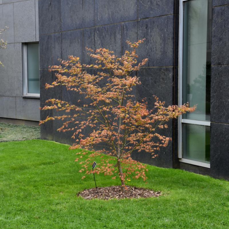 A stunning, semi-dwarf selection that features bright, copper-orange-pink spring foliage that turns burgundy in summer; fall color is bright orange-pink; compact and slow growing, with a graceful, arching habit; perfect for the garden or small landscapes