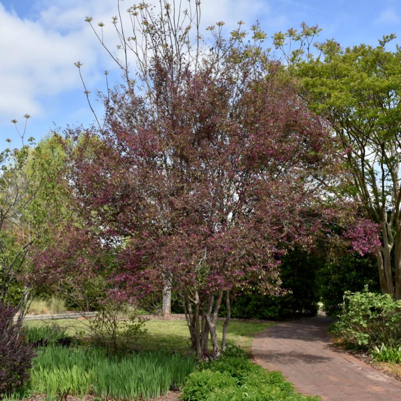 A delighful spring-blooming shrub with stunning deep pink flowers smothering the plant; blackish-maroon foliage maintains its color even in summer heat; an easy to grow and well-behaved shrub for general garden use