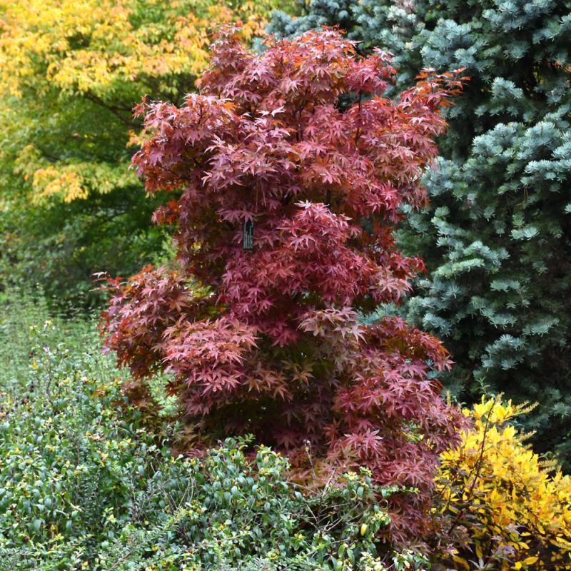 True to its name, this variety maintains a somewhat columnar form, with burgindy to red foliage all season long, ending in a fiery display in fall; the dense and narrow upright form makes it wonderfully useful for many garden applications