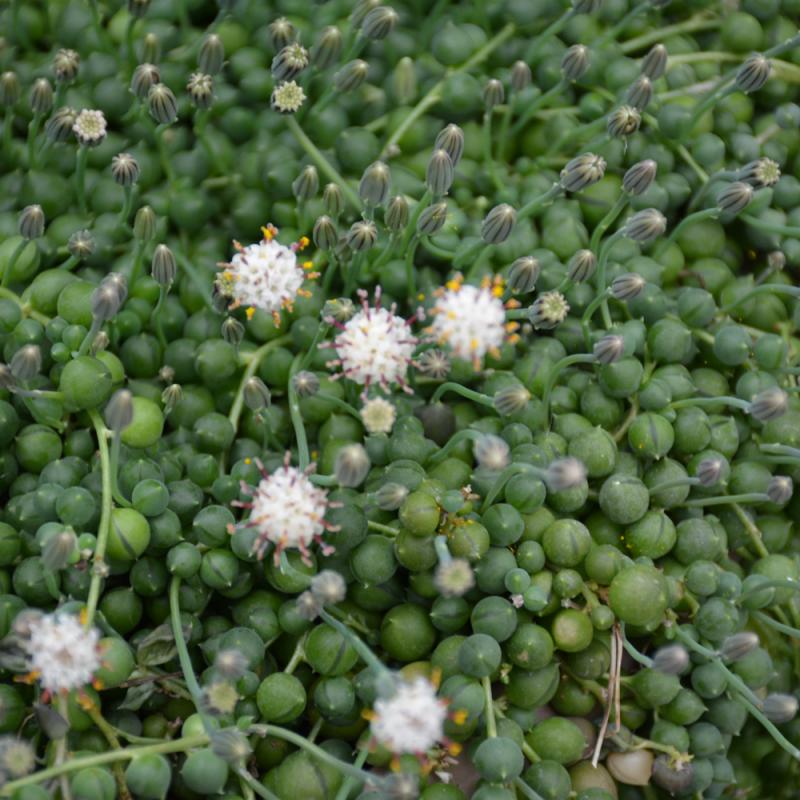 An interesting and unusual trailing succulent with spherical green foliage strung along the branches; a dramatic accent in rock gardens, or spilling over the edges of containers and hanging baskets