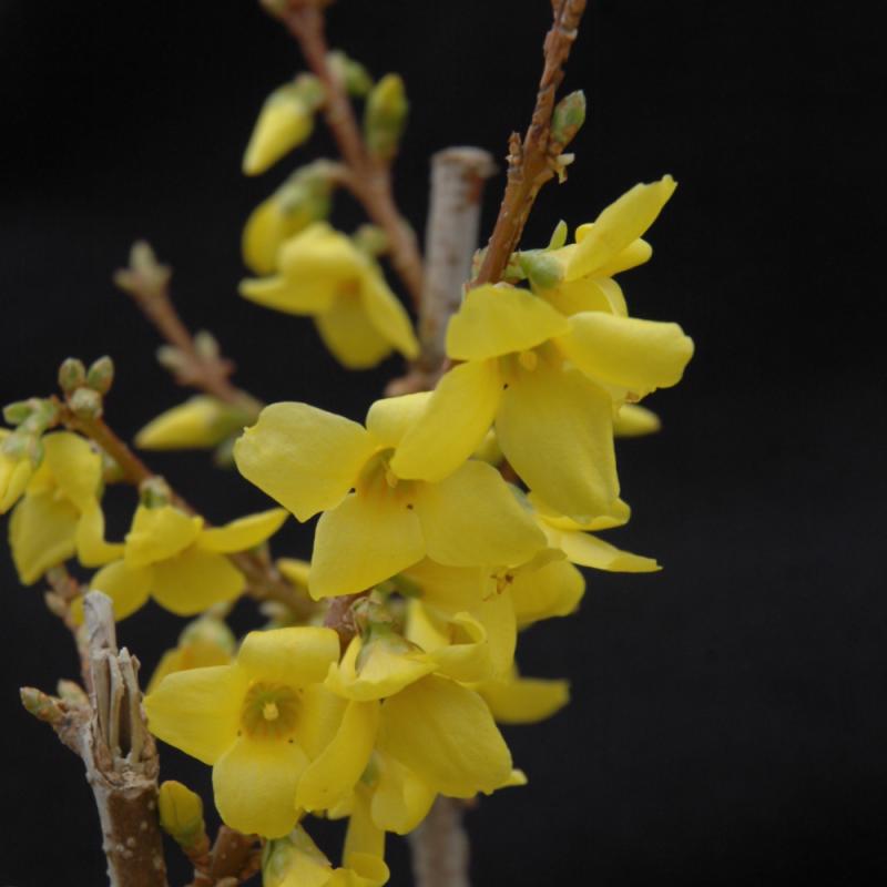 A compact shrub suited to borders or in the garden; superior, brilliant yellow bell-shaped flowers in spring along the branches and deep green foliage have made this a garden favorite for early spring color